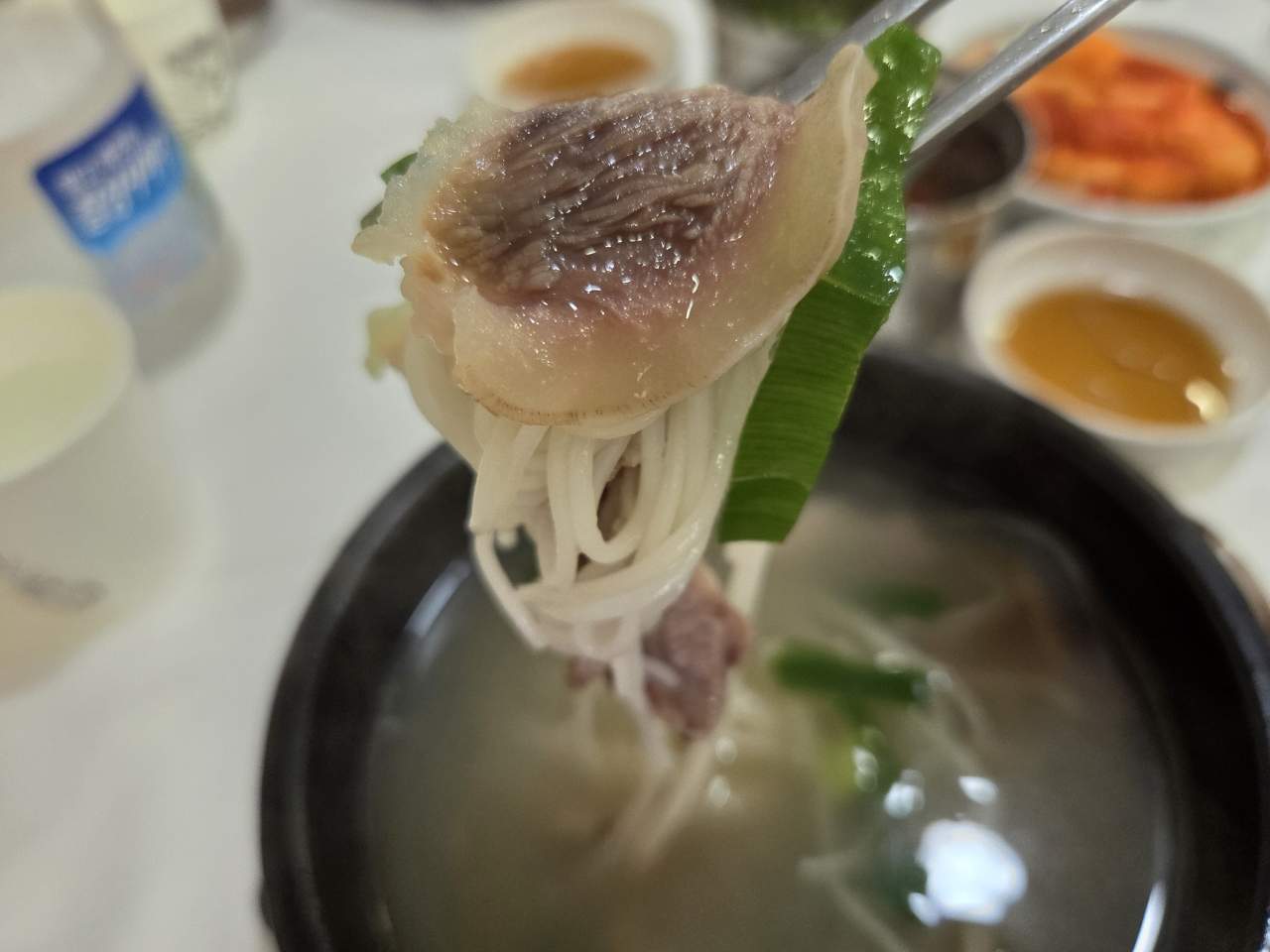 - 맑고 깔끔한 육수에 소머리 고기가 푸짐. 특히 사진속의 콜라젠이 많은 쫀뜩한 부위 맛있어요.