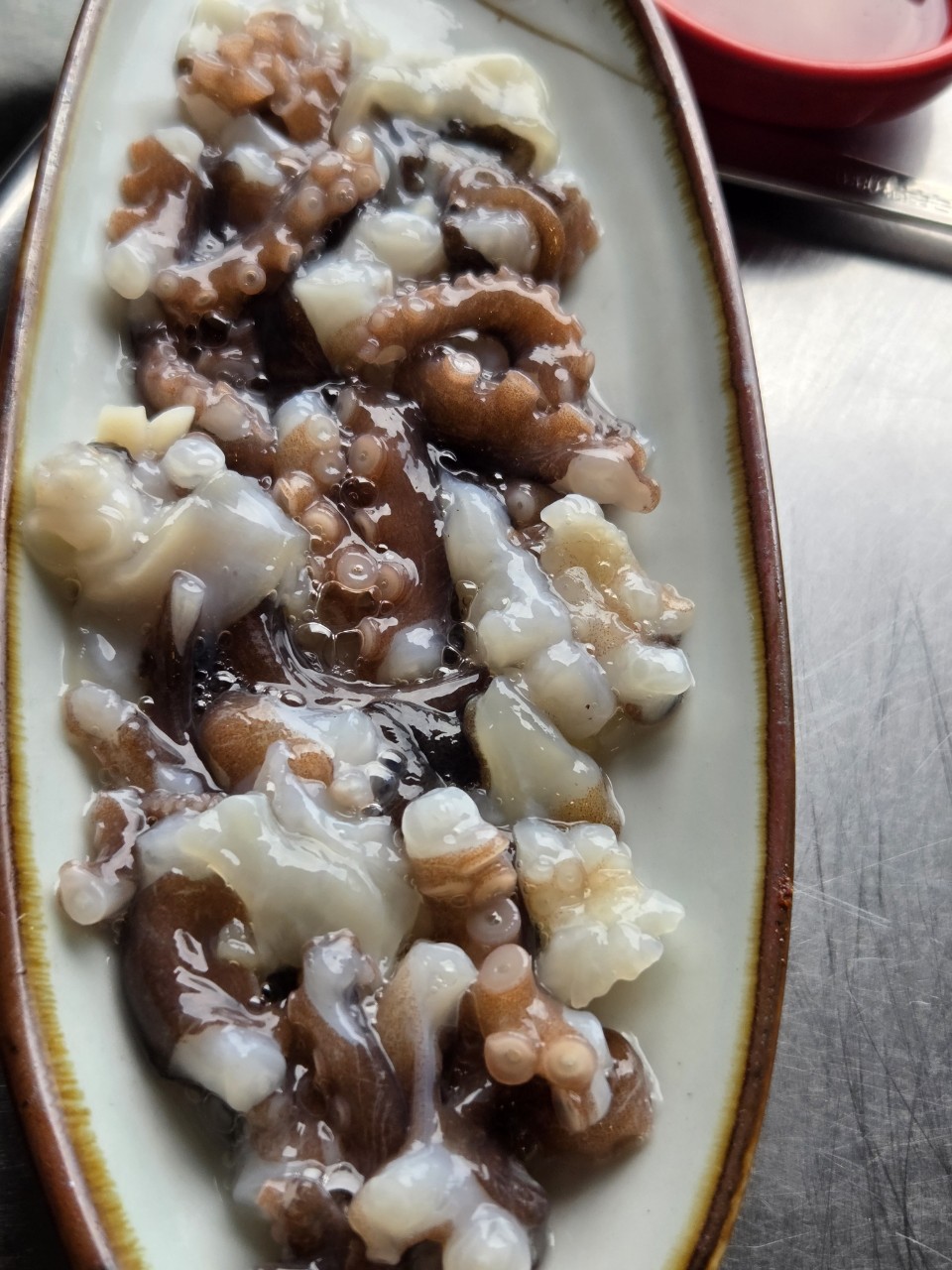 꿈틀거리는 산낙지를 바로 손질해 주시는데, 참기름장에 찍어 먹는 쫄깃한 식감은 좋았습니다.